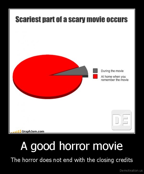 This last bit is the one I will leave you with: audiences must be in control, even when they are out of it. empowerment-disempowerment scenario, horror fans get their thrills from being put into an uncomfortable situation while still—subconsciously—remaining in charge. There’s no real threat to them, but the power of the imagination can work wonders on their adrenaline. Indeed, there is a renaissance going on for horror in interactive narratives. RPGs, ARGs, Copypasta, zombie runs, post-apocalyptic survival fantasies, and the zillion or so haunted houses that crop up in the fall show that people want to experience horror first-hand.