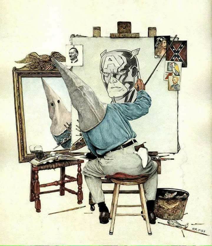 This piece is inspired by the artwork above, a parody of the famous Norman Rockwell triple self-portrait. This satire, like the original, speaks to the glamorized self we see in the mirror, demolishing and lightly mocking (respectively) their subjects. The depictions are not truth. They are the stories that people share in order to maintain illusions. And, like all stories, they are dependent on audiences in order to maintain their meaning.